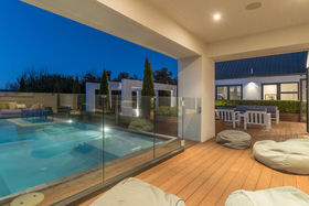 Architect designed with soaring spaces melding to intimate havens, American maple floors in foyer, kitchen and dining areas melding to warm carpet in living and bedrooms with aggregate in the separate family/media room. Deep windows welcome light and nature. Multiple exterior doors from every living space and every bedroom link you to outdoor living choices on decks and patio, and by the outdoor fireplace and moat surrounded pool; lots of places for children (and adults) to play. Entertain easily when the kitchen is beside the deck and a generously appointed scullery conceals your preparation. Love the way the dual sided fireplace and crafted semi wall delineate dining and kitchen from living.
