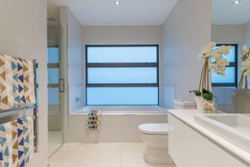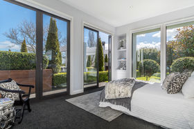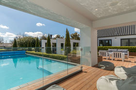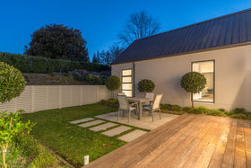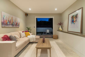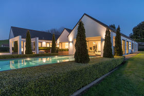 Luxuriate in a master suite where you feel as though you wake in a private garden; bathe in a gorgeously spacious bathroom and dress from a well-planned walk in wardrobe. An office completes the parental zone while children can leap out to the lawn from their bedroom wing which has a bathroom each end. All very practical too with plenty of attractive built in shelving and storage and massive garaging.
